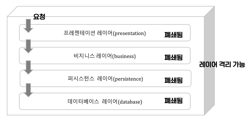 - 표준 아키텍처이며 관심사를 분리하고 각 레이어별 역할을 격리한다.